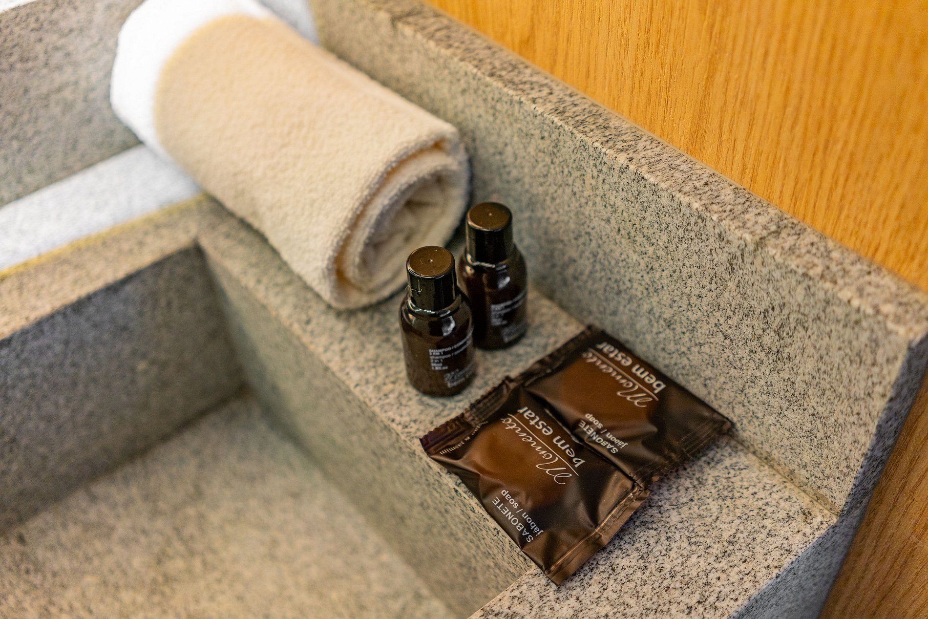Kit inicial com papel higiênico, sabonete, shampoo e condicionador