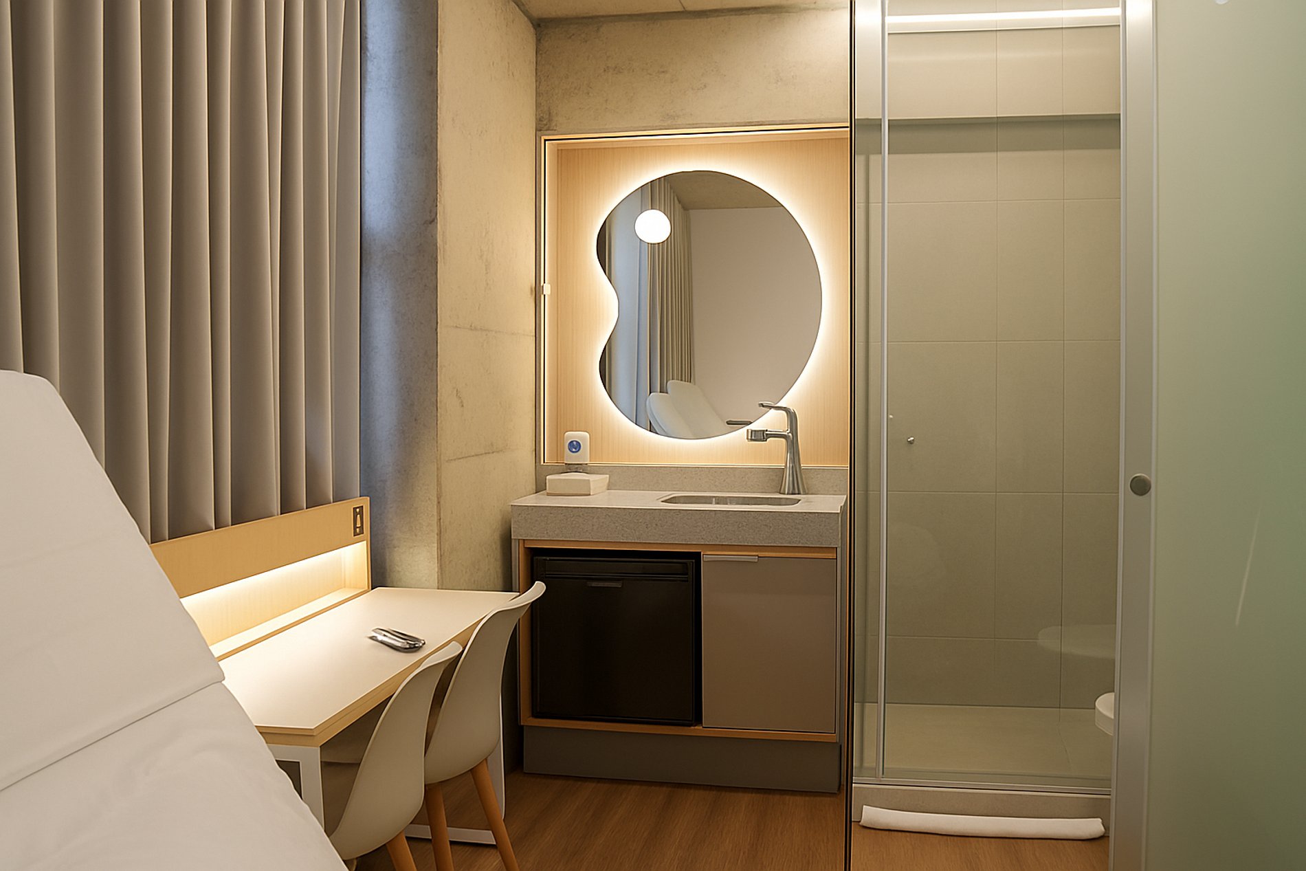 Mais do que um quarto, aqui você aproveita espaços modernos e integrados para uma estadia completa!